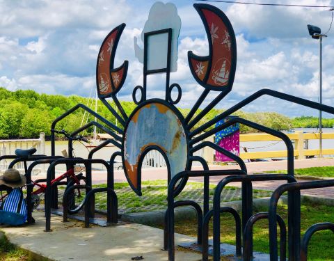 景点是在镇上。,河边。就是几只大螃蟹没有其他了, 所以顺路经过的话无妨。顺便打打卡。特意坐车去的话,个人觉得就无必要了。附近有一个夜市下午四点钟后才开。距离大螃蟹雕像不到五分钟。但这个夜市主要卖水果...