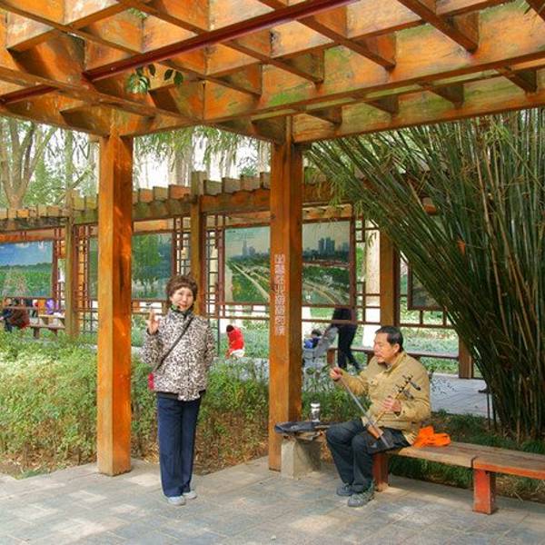 太阳公园建于上世纪50年代是劳动人民义务劳动建成的。 整个风格是苏州园林市,有假山,有湖泊,曲径通幽。 虚心是用竹子做的。湖畔还有一车白鹭,也是我小时候拍照的地方,