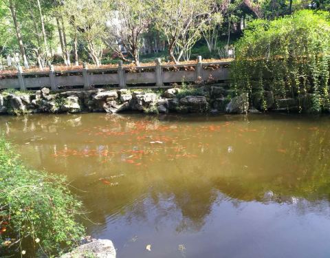 去六福园(钟家村店)与同事议事并吃饭,去早了点,刚好去旁边的汉阳公园走了走。以前是汉口有中山公园,汉阳有汉阳公园,都是40年以上的老公园了,可想当时这个公园在汉阳的地位,当时汉阳区的很多中秋节、端午节、元宵节花灯活动都会在这里举行。。。。现在占地是越来越小了,但仍有小山,小水,小长廊,金鱼儿在池塘里游来游去,参天挺立的水杉树郁郁葱葱,老树长存。这里有所老年大学,很多老人们在这里聊天谈心学习,夕阳红生活格外惬意☺二十多年没来这里了,驻足在此,满满的回忆。