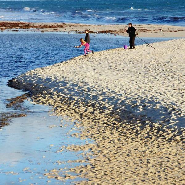 早上懒散的睡到太阳起到屁股处才施施然起床,收拾好行李后先去了旺宝饮茶(插播,旺宝真是一秒干掉一大票吃点心的中餐厅,它家的焗奶黄包简直就是极品,一口过去是会喷汁的好吗,据很多粑粑麻麻说,旺宝让他们吃到了以前小时候香港点心的味道,价格还要合理,这么有良心的中餐厅要大推啊,请自行搜寻The Wang's Treasure House,我不会告诉你它就在我家附近所以我每月必去报道……) 好像离题了……咳咳咳咳说回正题,满足的填满肚子后,我们去超市买上了食材和必用品,大概2点多我们踏上了旅途,直接开车驶向Moore River。Moore River距离珀斯大概100+公里,开车大概1个多小时,距离尖峰石阵还有1个半小时车程。Moore River的出名在于 小段小小的沙滩把海和湖隔开了,湖水的深蓝和海洋的蔚蓝截然不同,听说湖水的颜色会随着季节和温度的不同而有所改变,夏天的时候湖水的颜色一度会是深墨绿色的,和始终蔚蓝的海洋一沙之隔,煞是好看。 我们到达Moore River的时候正是下午3点多,光线正好,抓起相机的不停的拍拍拍,一直拍到日落(对的,冬天日落大概在4:30就开始了),我们在一沙之隔的沙滩上来回玩,涨潮随着日落而至,海水会漫过沙滩奔向湖,稍不留神很容易就被遗留在沙滩的另一侧回不来了……