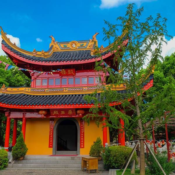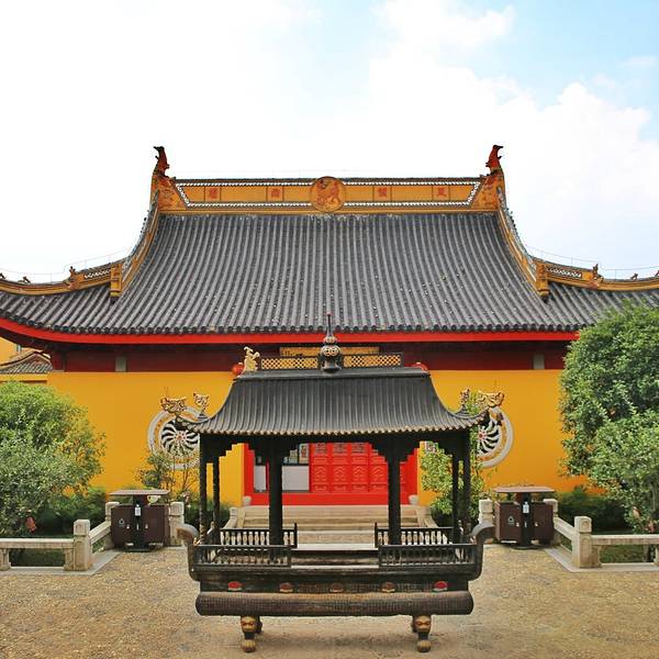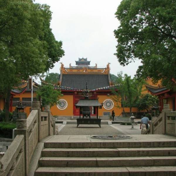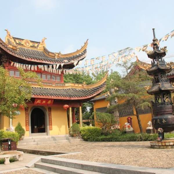 漫步其中,才得知这座寺庙始建于东吴赤乌年间,迄今已有1500余年历史,几经兴衰,现在的为93年重建恢复的模样。寺内胜迹众多,有山门、天王殿、观音殿、地藏殿、玉佛殿、大雄宝殿以及香花桥等,其中寺庙里600年紫薇、1500年古银杏神树上12尊观音、长2.5米的汉白玉卧佛被称为“三绝”。