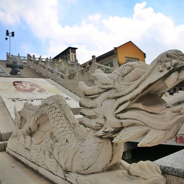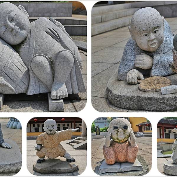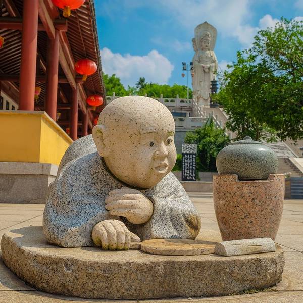 寺院借凤凰山水之景,形成别具一格的佛教圣地,在佛教文化里面,有一个三面观音像,此时此刻不禁让我想起三亚南山108米高的海上观音。广场上还有许许多多形状不一的雕像,不仅仅有趣还挺有意思,如果有小孩子还可以上前与其合影。