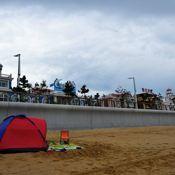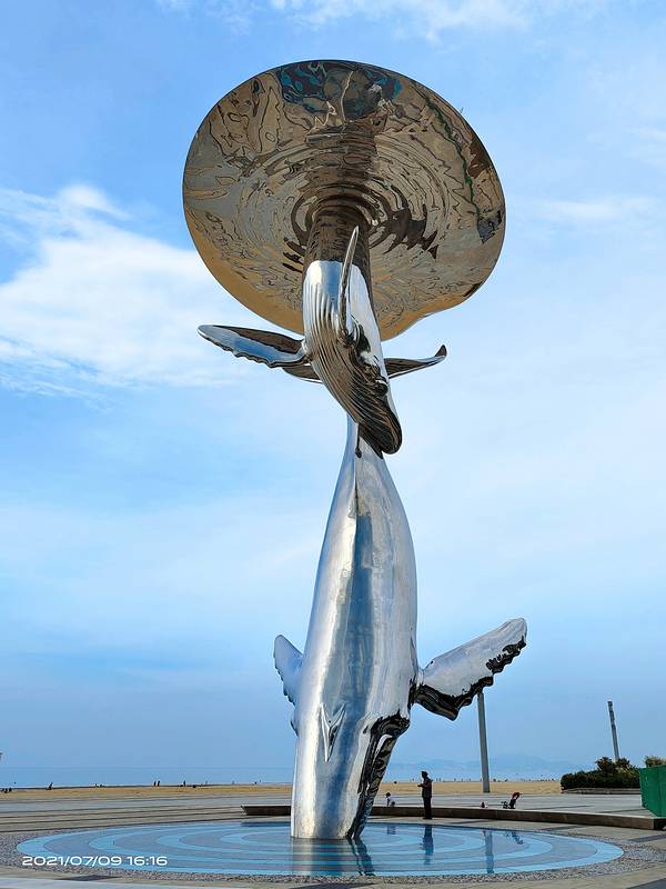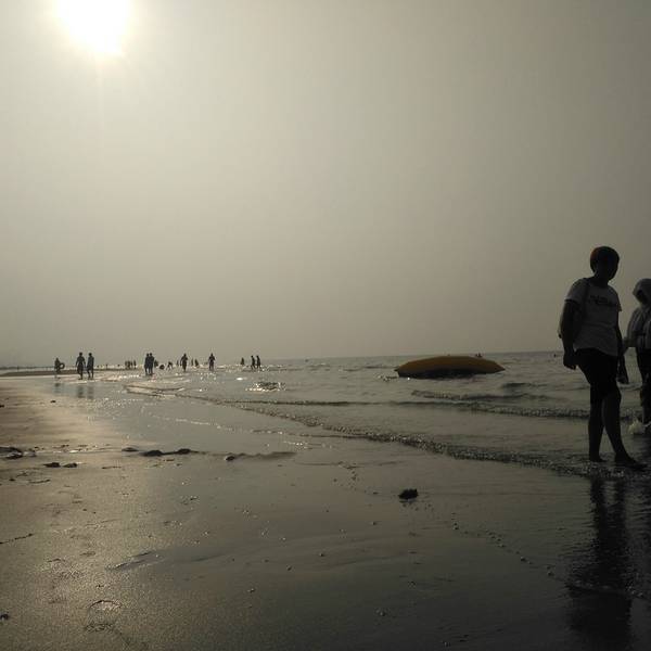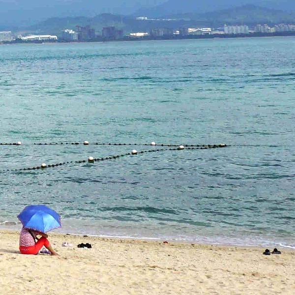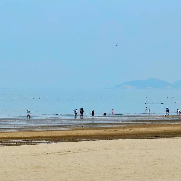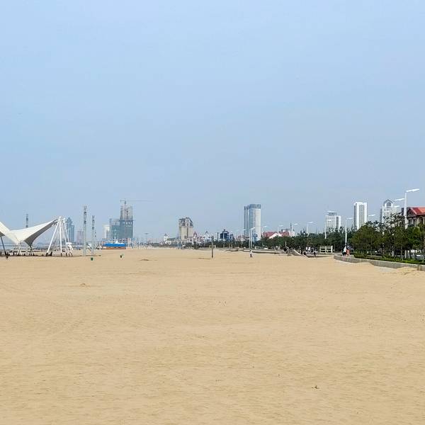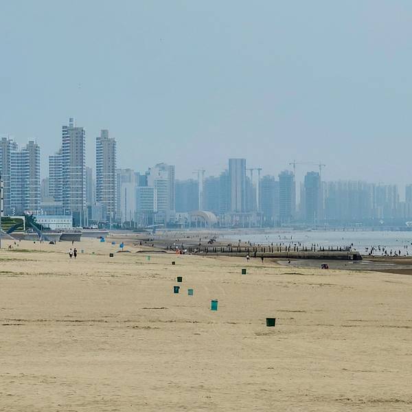 坡缓水洁,沙质细柔,夏季中午海水水温为25°C左右,是我国最优良的天然海水浴场之一,素有"北方第一海滩"之称。