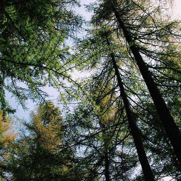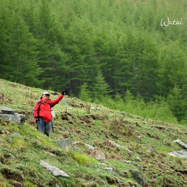 待到吉祥寺时,大家在一片松树林里休息,这里却是上午最美的回望西台