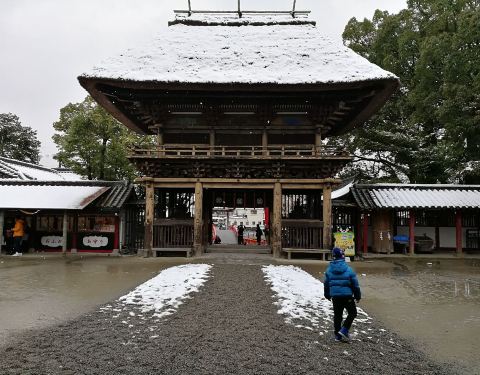 神社前的荷塘还未开花,开花一定超级无敌漂亮。离火车站非常近,大概走了五分钟离火车站非常近,大概走了五分钟。建筑为草木结构,有历史感,是日本国宝级的神社。神社前的荷塘还未开花,开花一定超级无敌漂亮