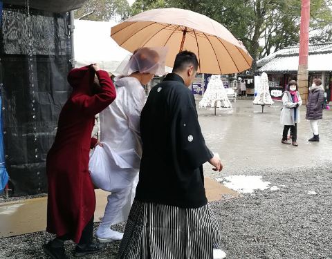 去了雪后的神社,有一份宁静的美。正好遇到日本的一对新人在神社举行婚礼,很幸福的感觉。