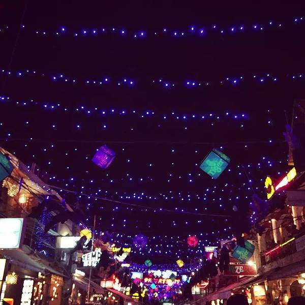 每家酒吧的音乐加上街道里临时搭建的舞台超重低音,我估计晚上我是睡不着了吧