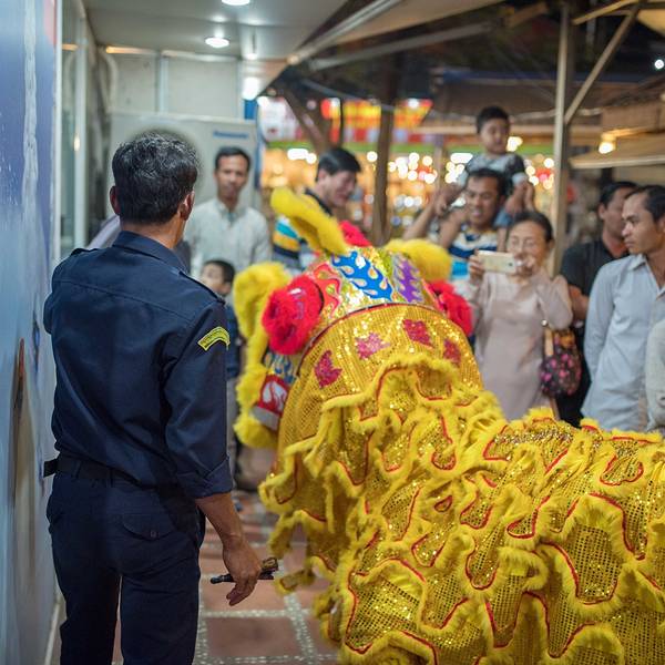这应该是唯一一个在暹粒国人较少的地方,当我们选择白天在柬埔寨的各大遗迹不停游走时,很多外国人选...晚上回酒店老妈有些困倦准备休息,我则选择跟各位在暹粒的街头继续逛逛在酒吧街旁边遇到舞狮队,都由当地人组织,终于感到了一丝过年的意味~这应该是唯一一个在暹粒国人较少的地方,当我们选择白天在柬埔寨的各大...晚上回酒店老妈有些困倦准备休息,我则选择跟各位在暹粒的街头继续逛逛在酒吧街旁边遇到舞狮队,都由当地人组织,终于感到了一丝过年的意味~这应该是唯一一个在暹粒国人较少的地方,当我们选择白天在柬埔寨的各大遗迹不停游走时,很多外国人选择晚上在这里狂欢,不在乎第二天究竟会多久醒来,随性而为,虽然羡慕但还是感觉自己学不来所以我们匆匆在里面逛逛十点多就慢慢走回宾馆