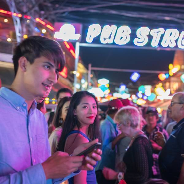 在人潮鼎沸的暹粒老城区,老市场的旁边有一条让外国人流连忘返的酒吧街“Pub street”。