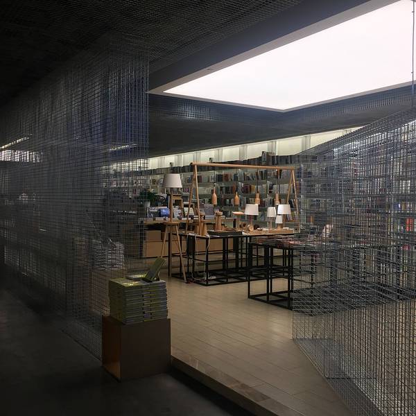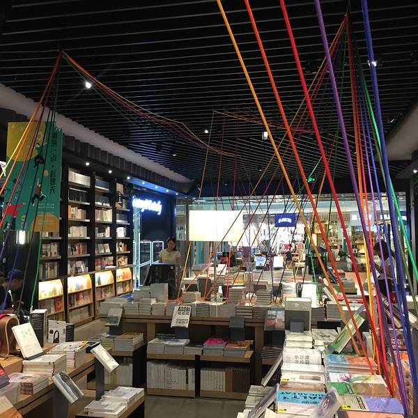 红星路三段IFS国际金融中心LG223 十分有设计感的书店,两个区域由铁丝网隔开,营 造出一种现代感