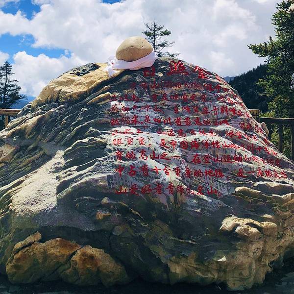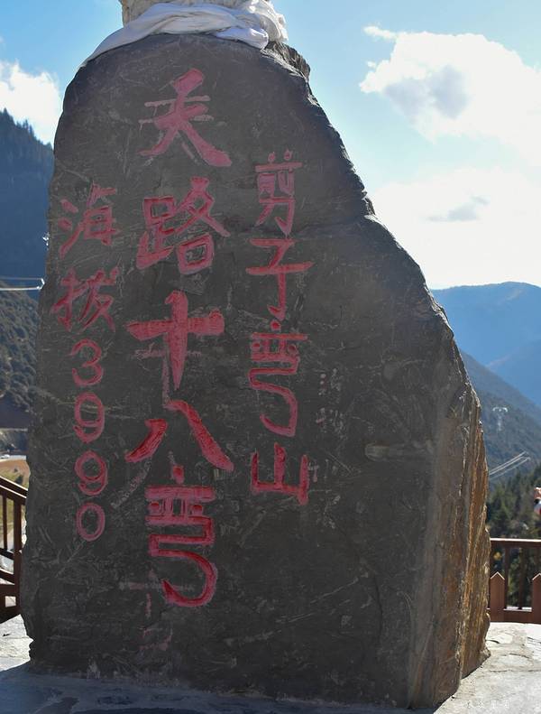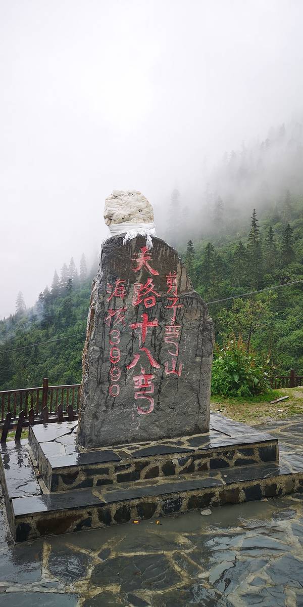 我们跟着杰哥的车行驶在这 盘山 公路上,看着道路两边的美景满满往后退去,竟不知其实此时我们已经身处G318一景之中。待杰哥告知,我们方知进入了318最美路段的天路十八弯!真所谓“不识 庐山 真面目,只缘身在此山中”。说到国道318线,除了沿路各种美景之外,G318本身也是一个传奇,其中那段天路十八弯更数一绝!318国道剪子湾山的天路十八弯。由于海拔较高,4500多米,道路艰险曲折而得名!看着这天路十八弯,不禁想起儿时看过的日漫头文字D里的五连U型发夹弯,简直是动画在现实中的重现呀。把图往朋友圈一发,所有人都逗趣的说好想来这里飙个车,过过漂移甩尾的瘾。当然了,大家也是说说罢了,毕竟山路还是挺危险的,上路飙车更是不对,还是回头下个极品飞车自己爽爽就好了吧!天路十八弯的山腰观景台上,有块石头,刻着“ 日照 金山 ”的文字,详细内容是写的 四川 最高峰的 贡嘎 山相关内容,可是从观景台上我并未看到远处的雪山,可能是被远方的云雾遮挡了吧。