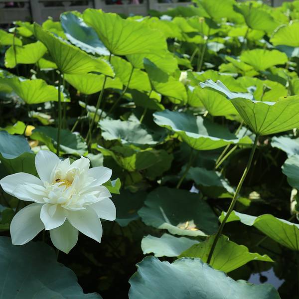 位于永宁的一处赏花亭,每到盛夏时节,接天莲叶便成了这的一副景象,一望无际的荷叶搭配粉白的荷花非常美