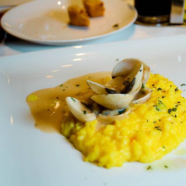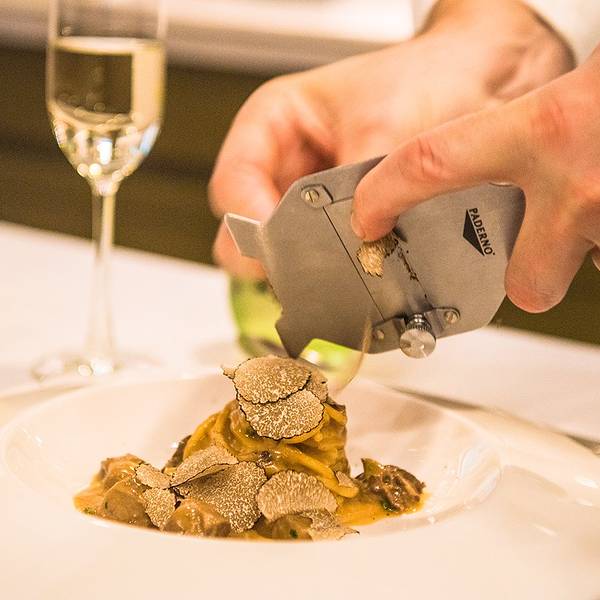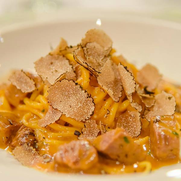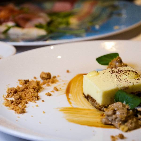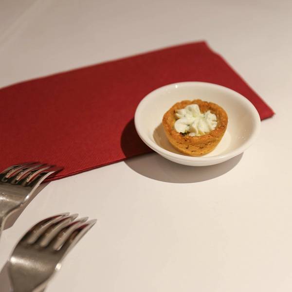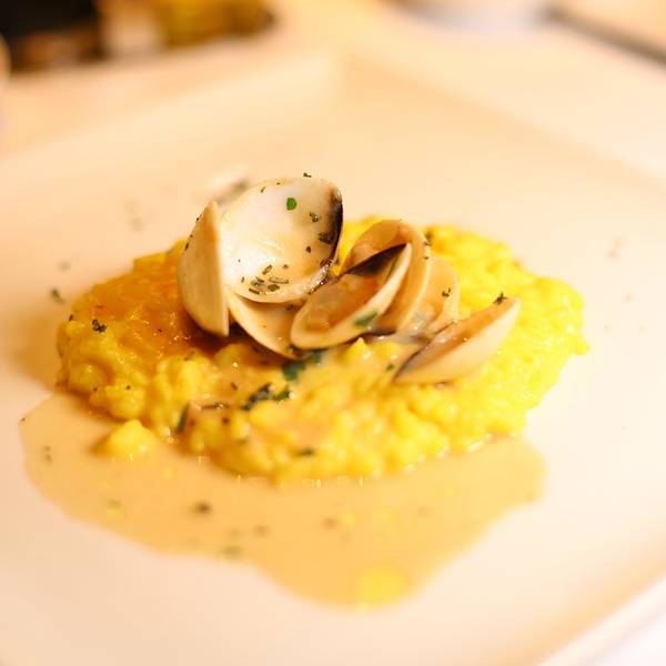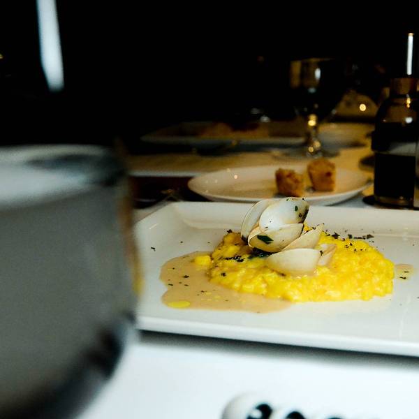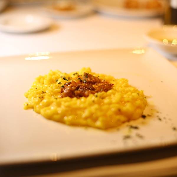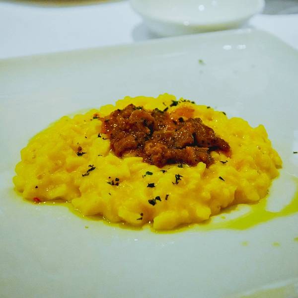 意大利鳕鱼慕斯,波伦塔意大利式玉米粥,柠檬蛋白霜马林脆饼& Ajoblanco 酱汁 Raviolone Di Ricotta E Spinaci, Tuorlo D’uovo E Tartufo Nero (V) 特制意大利烩饭配以菠菜、意大利乳清起司、蛋黄以及黑松露刨花