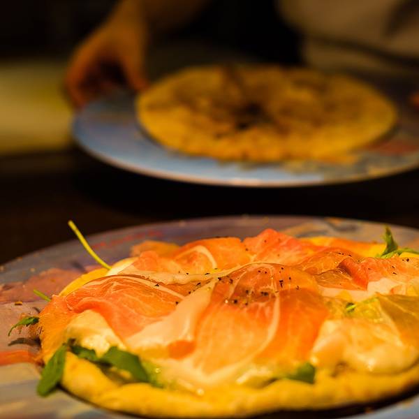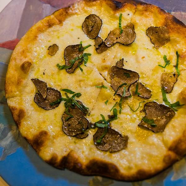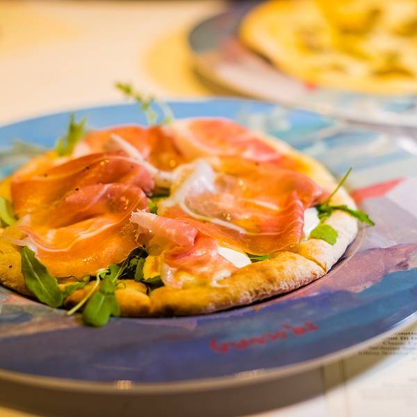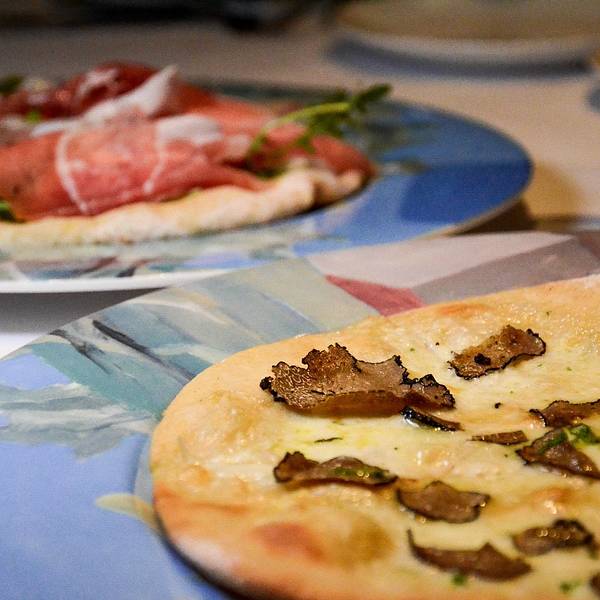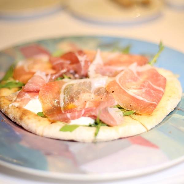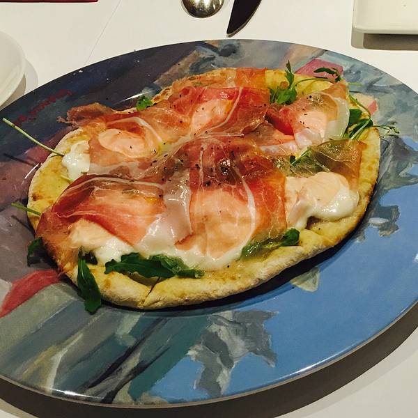 Trattoria餐厅只供应晚餐,我们是在Pizzeria用午餐。记忆最深刻的当属Bianca 比萨,配以来自普利亚的酥软布拉塔起司、新鲜绿叶沙拉、特级初级橄榄油以及色泽红润的来自“PioTosini”的帕马尔火腿。餐后甜点,提拉米苏,也足以惊艳我的味觉。
