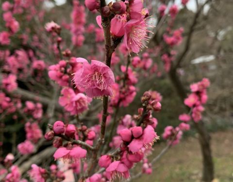白梅、粉梅和红梅等等皆各自大放异彩、百花争放,在2月底3月初是最佳的观赏期近看的白梅姿色,深桃红的梅花枝头。白梅、粉梅和红梅等等皆各自大放异彩、百花争放,在2月底3月初是最佳的观赏期。拜访的当下除了视觉的飨宴以外,也不断闻到梅花清淡的香气,让人相当沉醉在这场花园盛宴当中。...近看的白梅姿色,深桃红的梅花枝头。白梅、粉梅和红梅等等皆各自大放异彩、百花争放,在2月底3月初是最佳的观赏期。拜访的当下除了视觉的飨宴以外,也不断闻到梅花清淡的香气,让人相当沉醉在这场花园盛宴当中。粉色的枝垂梅,梅园内的溪流景色。热海梅园本身的日式庭园景色也是吸引许多人造访的原因之一,在流水、日式凉亭等陪伴之下,欣赏着眼前的梅景更为惬意,古色古香的氛围让人忘却在其中。 展开