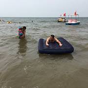 那个大盆里是凉拌海蜇,超级好吃!非常新鲜的海鲜,这只是开始.晚饭时分,海鲜大餐来喽经过四、五天的跋涉 ,孩子们都是有些累了, 在酒店休息了一下午(因为明天早上开始还有更精彩的活动等着我们)。