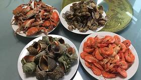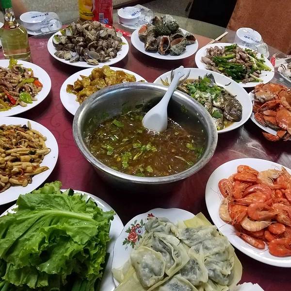 晚饭时分,海鲜大餐来喽......那个大盆里是凉拌海蜇,超级好吃!大赞!非常新鲜的海鲜,这只是开始..... 展开