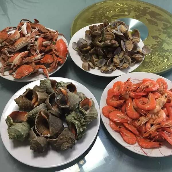 晚饭时分,海鲜大餐来喽......那个大盆里是凉拌海蜇,超级好吃!大赞!非常新鲜的海鲜,这只是开...经过四、五天的跋涉 ,孩子们都是有些累了, 在酒店休息了一下午(因为明天早上开始还有更精彩的活动等着我们)。