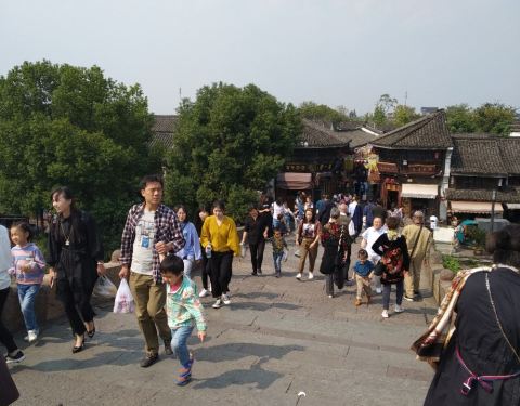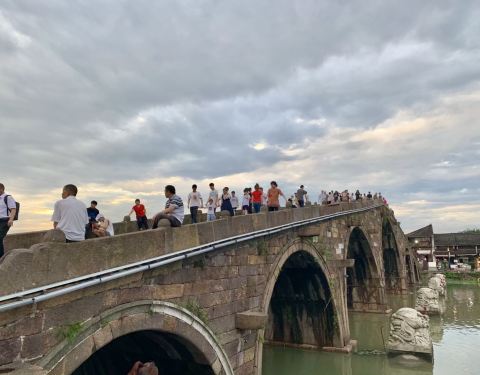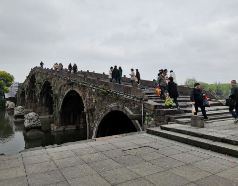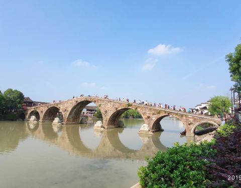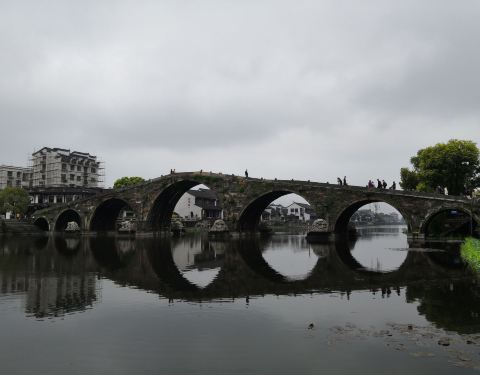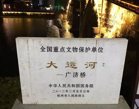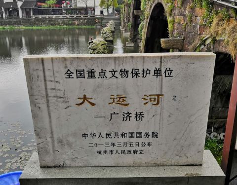 古运河上仅存的一座七孔石拱桥,位于余杭塘栖古镇,由于大运河申遗成功,广济桥作为遗产点正式成为了世界文化遗产的一部分,五一节的广济桥上游客众多。