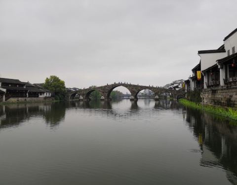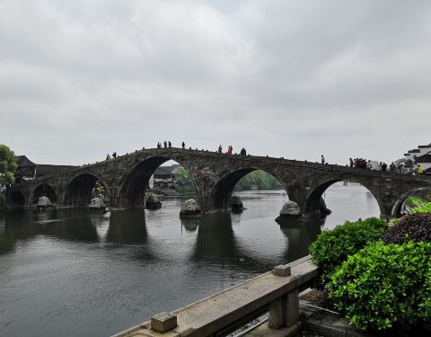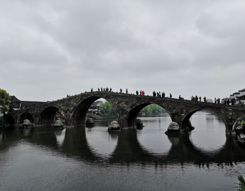 广济桥是塘栖古镇景点之一,是古镇主要的南北通道。广济桥是大运河上保存至今规模最大的薄墩联拱石桥广济桥是塘栖古镇景点之一,是古镇主要的南北通道。广济桥是大运河上保存至今规模最大的薄墩联拱石桥。从桥下拾级而上,感觉像是在爬山。走到桥顶,可以看到古镇的全貌。