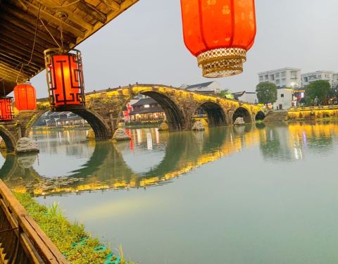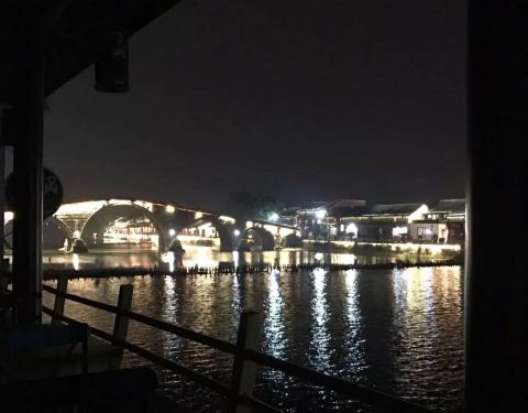 晚上夜景更漂亮呦。塘栖古镇的地标,是古运河上唯一大跨度的七孔石拱桥