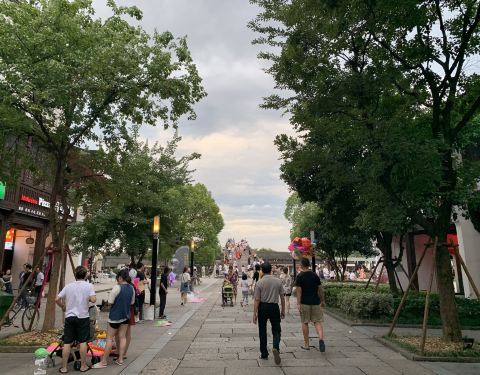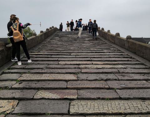 广济桥是塘栖古镇景点之一,是古镇主要的南北通道。广济桥是大运河上保存至今规模最大的薄墩联拱石桥。从桥下拾级而上,感觉像是在爬山。走到桥顶,可以看到古镇的全貌。