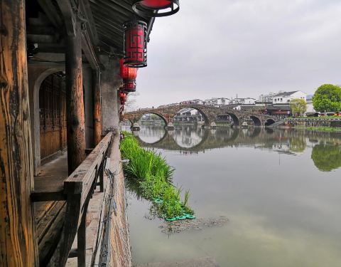 在很宁静的古镇里,大运河上唯一的七孔石桥!