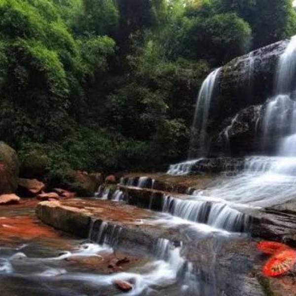 离城区就个把小时,里面茂林修竹、绿意盎然,瀑布溪水啥子都有,再加上这里的丹霞地貌,除了避暑也是赏景的好地方。