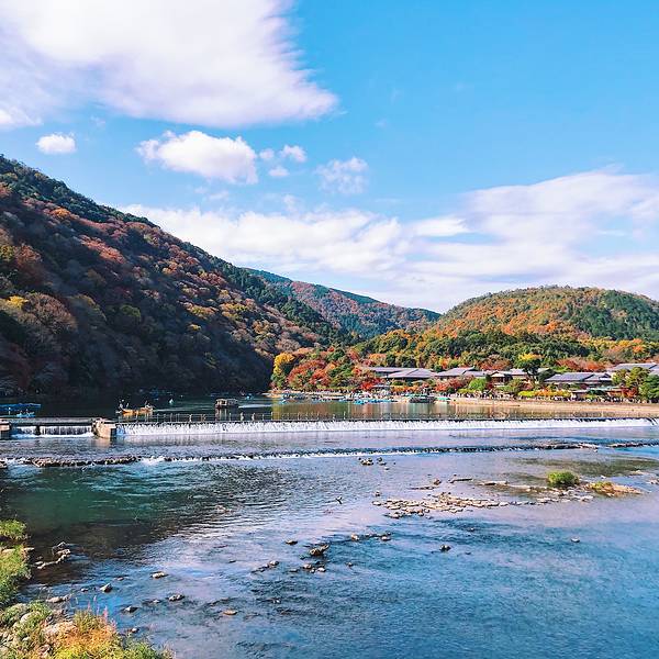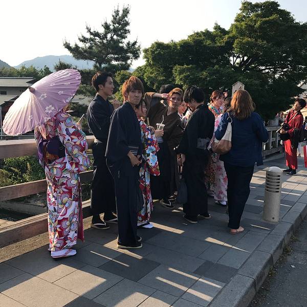 岚山风景区是很大的观光胜地,天龙寺、常寂光院、嵯峨野竹林、渡月桥都在风景区附近。不得不说的是渡月桥,渡月二字,总得匹配上跨海大桥的刚劲,长江大桥的气魄,港珠澳大桥的震撼吧。但是!都没有,渡月桥就是一座很安静的石桥,安静的如果没有桥头渡月二字的石碑,没有排队行走的人群,你压根不会意识到,渡月桥竟然是这么一座桥而已。但渡月桥附近有很多好吃的小摊位,我们也算不虚此行了。渡月桥两边风景竹林龟冈风景 展开