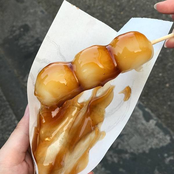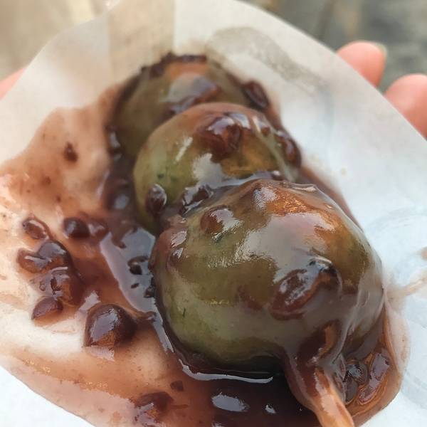 红豆酱的还好,那个黄色的酱,味道简直难以言表,...遇到一群日本年轻人穿和服来玩,打算偷拍他们的时候有个小哥看见我,还对着比了个V,特别可爱然后是深深伤害到我的……日式团子。