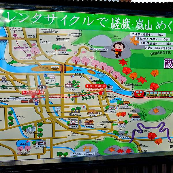 去岚山有很多条路线,可以坐京都市内巴士也可以坐JR直接到,然而我们选择的是从JR京都站出发坐到馬堀站下车,再徒步走到 トロッコ亀岡坐岚山观光小火车到达岚山地区。