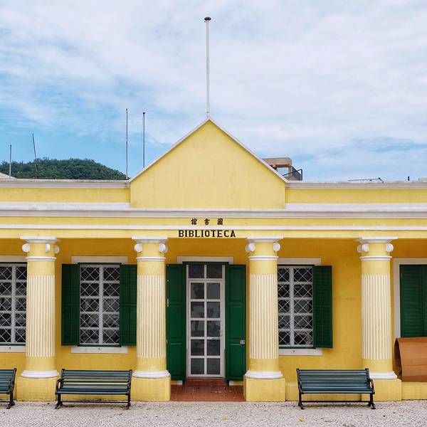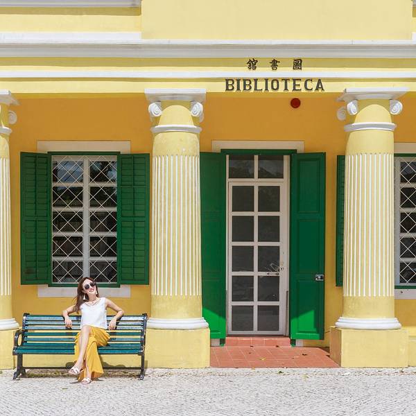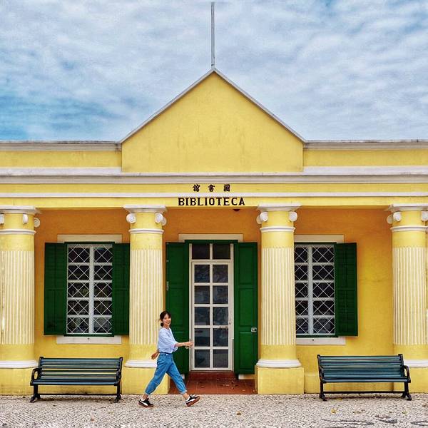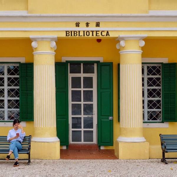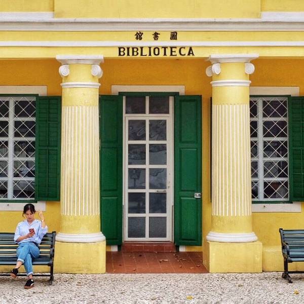 我想,#对称#对于 澳门 的建筑来说,是和#...从圣方济各教堂出来,沿着马路继续往前走一小段路,一个柠檬黄的图书馆跳入了眼帘。这次是柠檬黄与墨绿色的撞色。