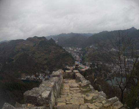 镇远府城垣位于镇远古镇的石屏山上 如果不知道还以为这里是修的豆腐渣工程 其实是一些古代留下的城垣 站在这里你可以看到远处的风景 还有就是整个镇远古镇的美景 如果是从石屏山上来的 过了观景的亭子再向上走5分钟就能到达这里