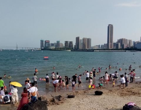 一样的这么好风光。在这里玩水还是挺不错的一个选择。 有点类似于在韩国釜山的海云台在这里玩水还是挺不错的一个选择。 而且的话是完全免费开放了一个这样子的地方还是挺好的。 有点类似于在韩国釜山的海云台。 一样的这么好风光。