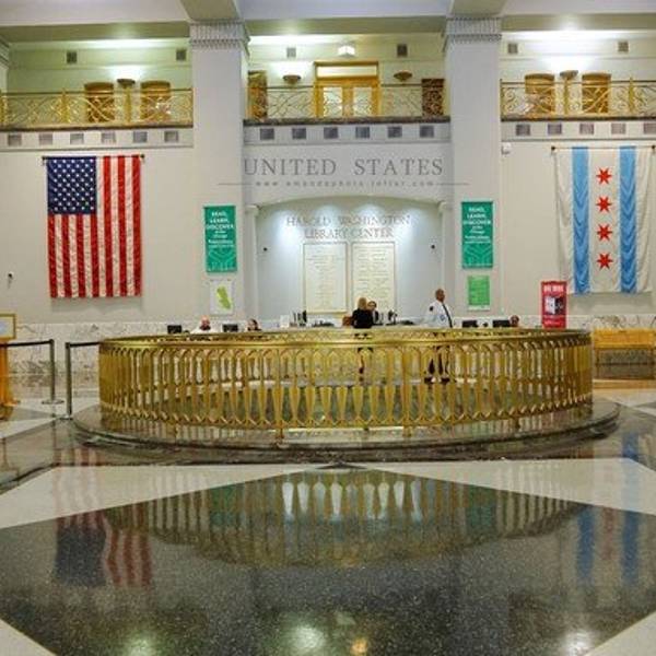 可乘坐地铁棕色线、橙色线、粉色线、紫色线至哈罗德·华盛顿图书馆(Harold Washington Library)站下车即可。