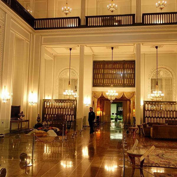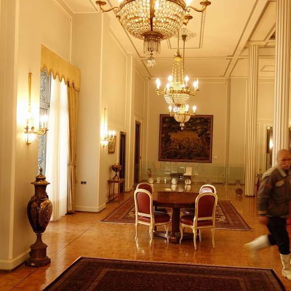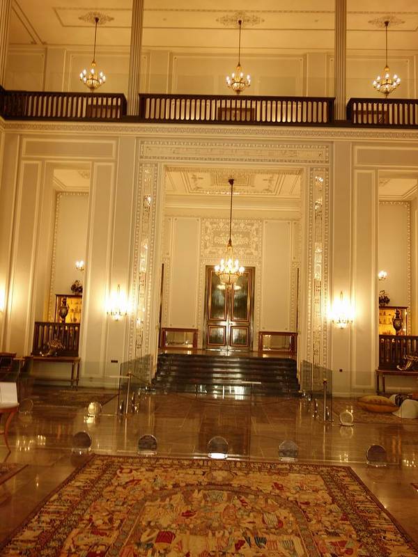 德黑兰的巴列维皇宫始建于上世纪30年代,占地面积410公顷,其中约有180公顷为森林、花园、草坪,该宫殿为巴列维王朝国王的办公室和夏天居住的地方。巴列维皇宫里的珍贵物品大多来自欧洲、中东的泊来品,比较开放与外国的交流比较频繁,环境悠闲和清净,蔚蓝清新的天空、红花绿树的园林、白雪皑皑的大山、诉说故事的建筑,带来的是一个静谧的历史。