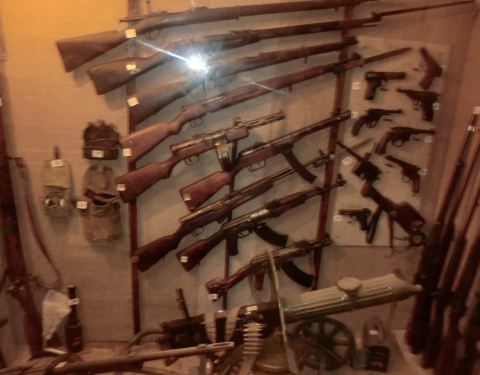 博物馆在一个小坡上,10点才开门。需要门票但没收款没给票根。博物馆室内和室外结合,室内就设在三个连通的掩体内。室外展示各种武器。