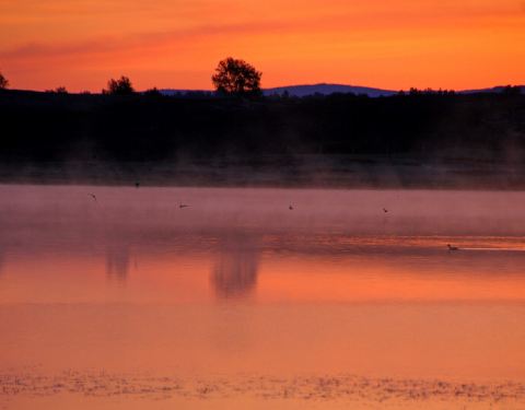 ...面上淡淡的冒着水汽,早上日出时分,似薄雾一般迷人,各种野鸭水鸟在湖上飞翔,周围拍摄日出的人很多湖面在冬天很冷的天气还没有结冰,湖面上淡淡的冒着水汽,早上日出时分,似薄雾一般迷人,各种野鸭水鸟在湖上飞翔,周围拍摄日出的人很多。