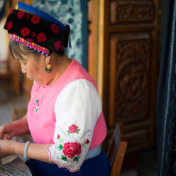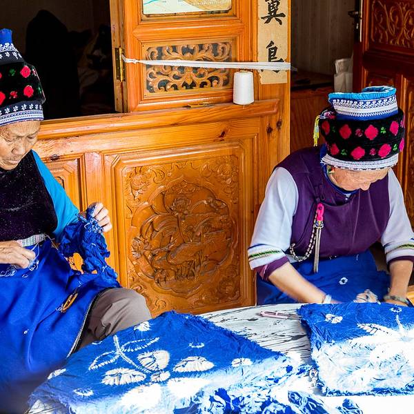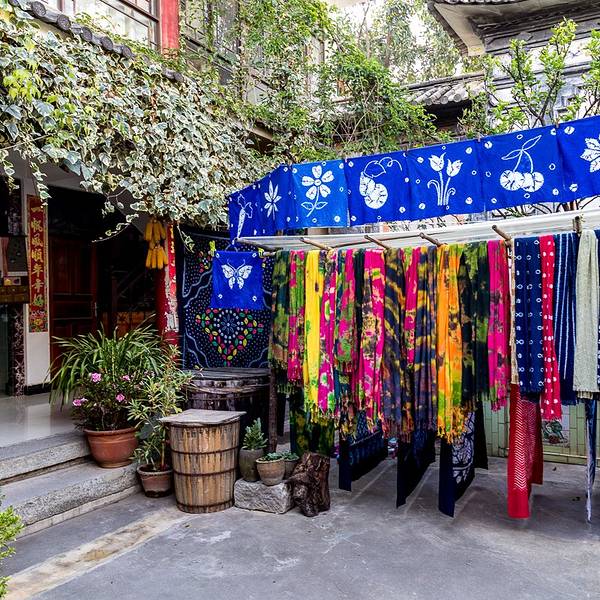 第二天清晨在古城里面,我去了向往已久的扎染房,扎染是我给人非常想了解的云南文化之一。扎染古称扎缬、绞缬、夹缬和染缬,是中国民间传统而独特的染色工艺。织物在染色时部分结扎起来使之不能着色的一种染色方...