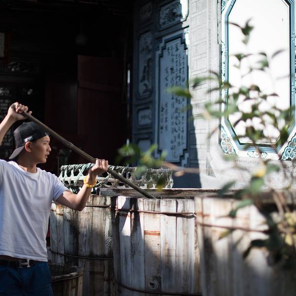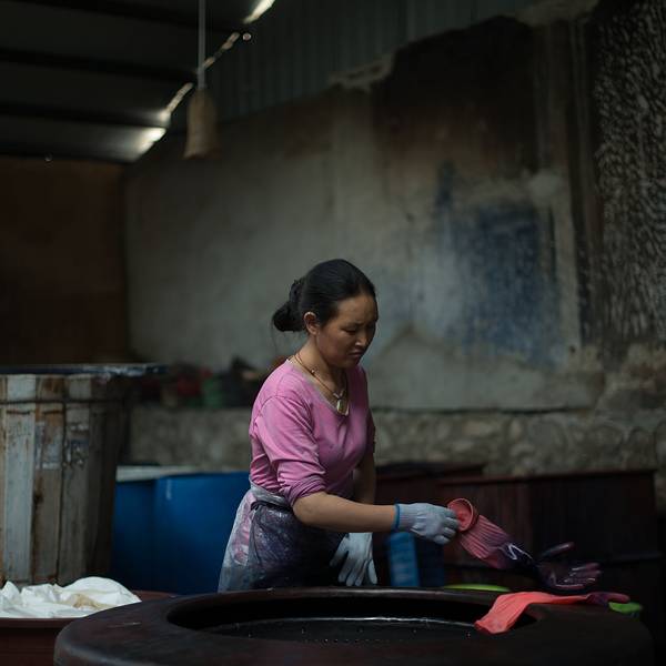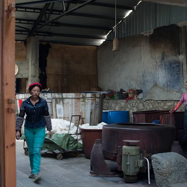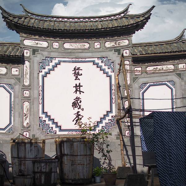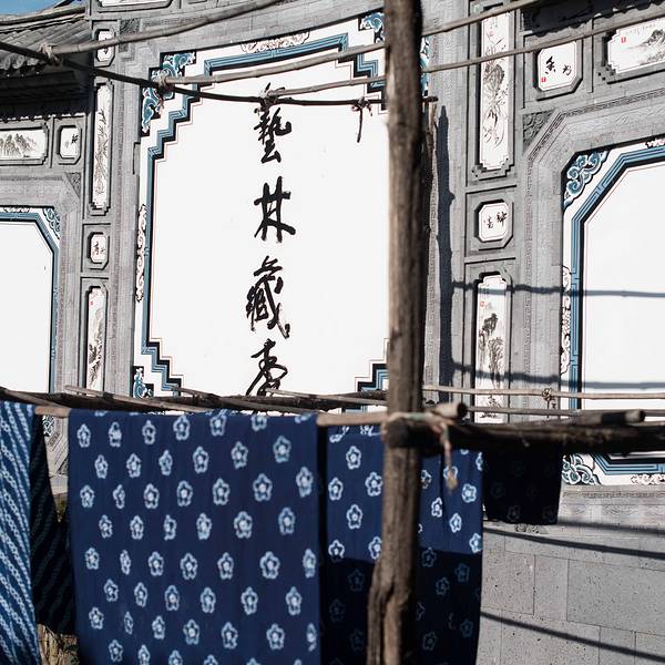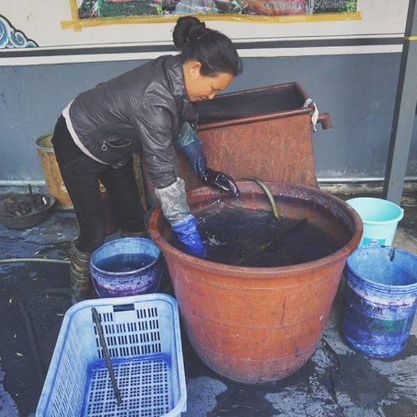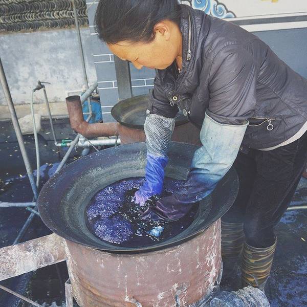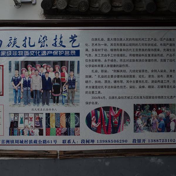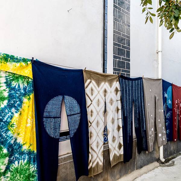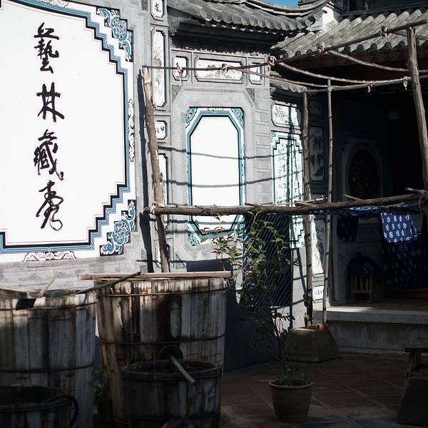 周城还有一个很大的扎染厂,也是对外开放的,从段立东扎染坊步行几分钟就可以到达。特色染缸还有白族的照壁。
