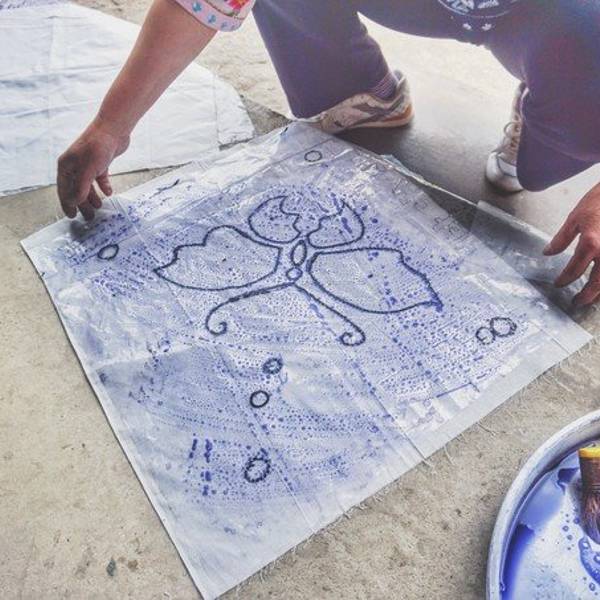 简直太喜欢了!今天行程最有意思的。看我缝的多认真哈哈哈哈哈哈哈哈哈 都是假象。完成!我们扎染开始