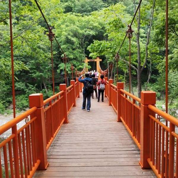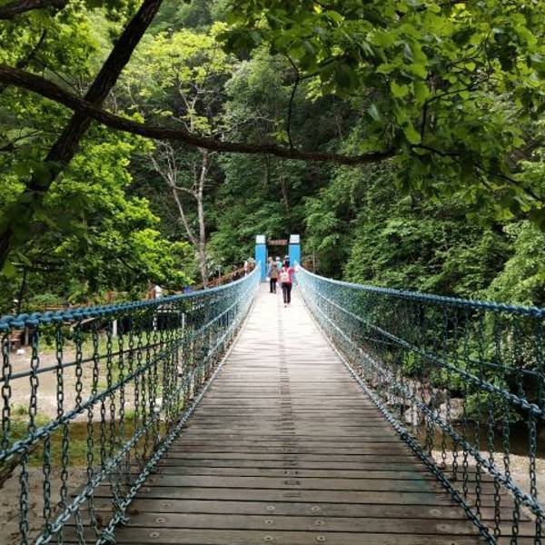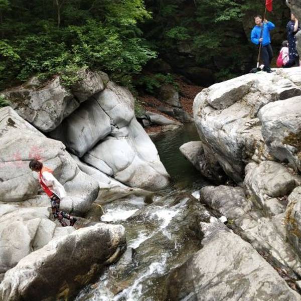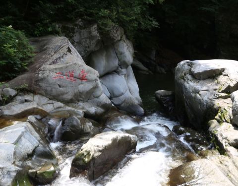 筐子沟景区景色不错,夏天沟里很凉爽,有几座颜色非常鲜艳的桥,很漂亮。有四道壶四个景点,每道壶都是由水潭形成,景区有个飞来瀑,是人为控制的,有时间放水的,没有看到。小遗憾。