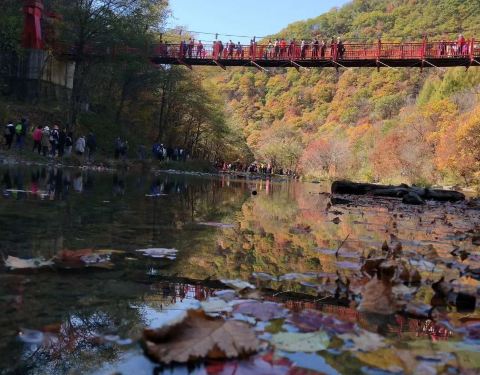 枫叶挺红的,还不错!新开发的景区,配套设施不是特别齐全,希望以后会越建越好新开发的景区,配套设施不是特别齐全,希望以后会越建越好!枫叶挺红的,还不错!景区附近的农家院消费也不贵,停车十元一辆车!