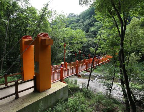 筐子沟景区景色不错,夏天沟里很凉爽,有几座颜色非常鲜艳的桥,很漂亮。小遗憾