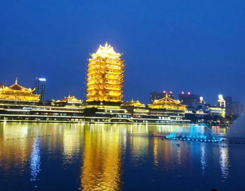 四十名楼之一,位于岷江边,滨江路。周边公交方便,住宿、吃的方便。周五、周六或重大节日可于夜间看音乐喷泉。都是免费的,进出湿地公园方便。