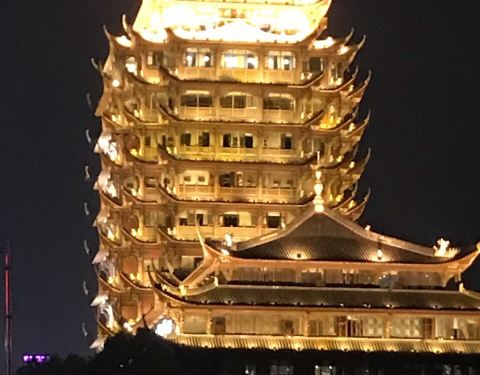 这个应该算是眉山的地标建筑了,坐落在眉山的外滩美食一条街上,旁边是岷江的支流。楼里面是宾馆,餐厅和各种公司,楼上面挂着各种公司名字,有些煞风景。白天的远景楼没有夜晚的好看。晚上灯光亮起,熠熠生辉,...
