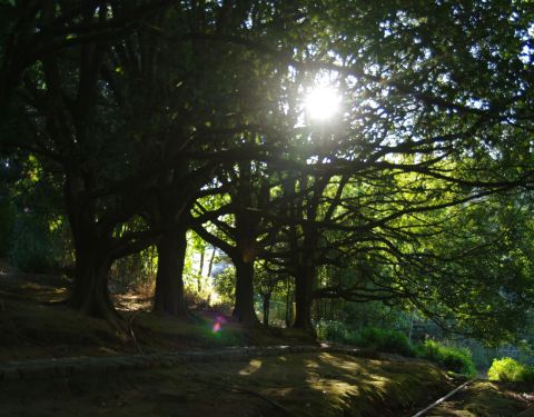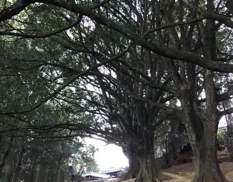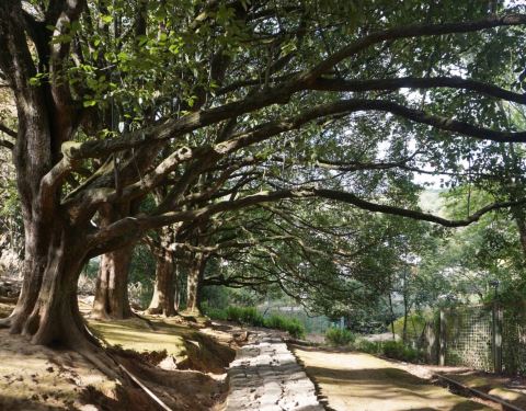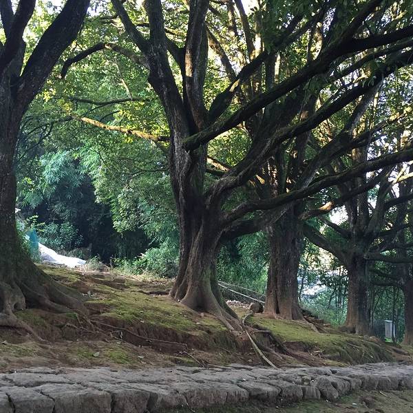 离大门入口有很长一段距离,其实就是一排百年大樹,拍的角度不同就可拍出像千手观音那樣的照片。