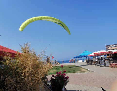 到达山顶之后,教练开始起飞准备,一切完成之后就等风来。随后的半个多小时就是人生的巅峰了,厄吕代尼兹海滩和死海的风景将一览无余。总之,选择一家口碑好的滑翔伞俱乐部最重要,毕竟还是安全第一。