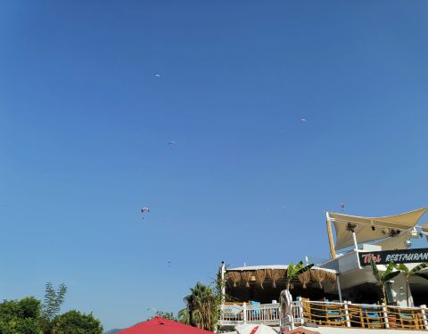 厄吕代尼兹海滩号称是土耳其最美的海滩, 就沙滩而言比中国的差远了,基本都是小石子。但海水真蓝,让人心旷神怡。这里也是滑翔伞和出海游的基地。
