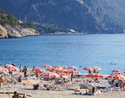 厄吕代尼兹海滩是土耳其地中海沿岸最美丽、最著名的海滩,整个海岸被群山环抱形成一座平静无波的泻湖,由于这里的海湾风平浪静,水中的倒影几乎静止不动,因而又得名“死海滩”。